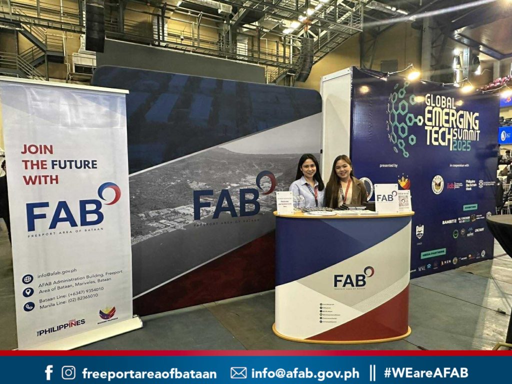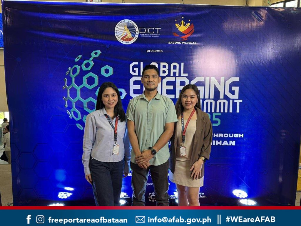 Mariveles, Bataan – The Authority of the Freeport Area of Bataan (AFAB), represented by its Marketing Unit and Management Information System Unit, joined the Global Emerging Tech Summit (GETS) 2025, a two-day event organized by the Department of Information and Communications Technology (DICT), the Provincial Government of Bataan, the Blockchain Council of the Philippines (BCP), and Philippine Blockchain Week (PBW).