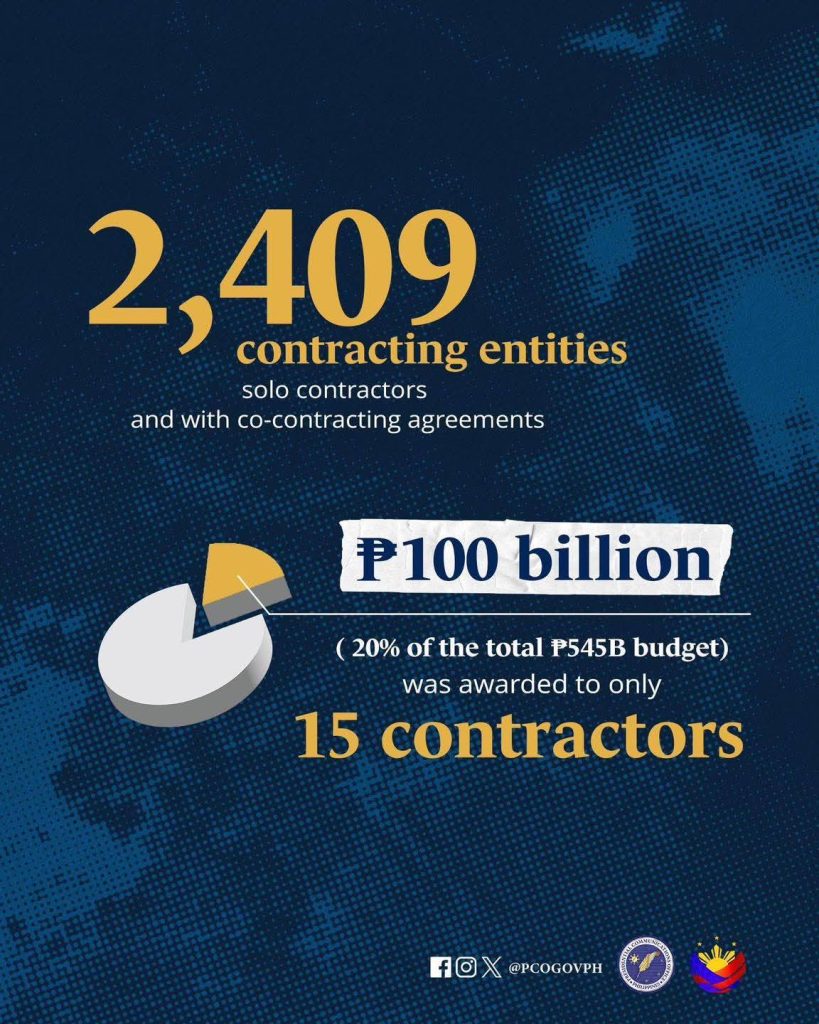 Shockingly, fifteen contractors, representing just a tiny fraction of the 2,409 contractors involved, cornered 20 percent—or roughly ₱100 billion—of the total budget.