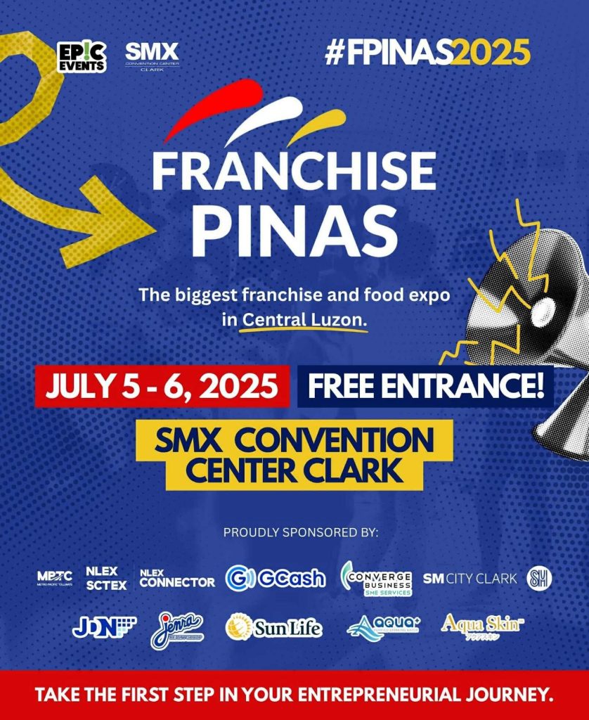 Franchise Pinas is back! The first and only franchise expo in Central Luzon is happening on July 5-6, 2025 at SMX Convention Center Clark. Previously held last October 2023, this second edition promises to bring more business franchising concepts and esteemed speakers on this 2-day event. The young and dynamic team of Epic Events Production, headed by Louie Alcantara, who has brought the recently successful Clark Aurora Music Festival and other notable acts here in the country.