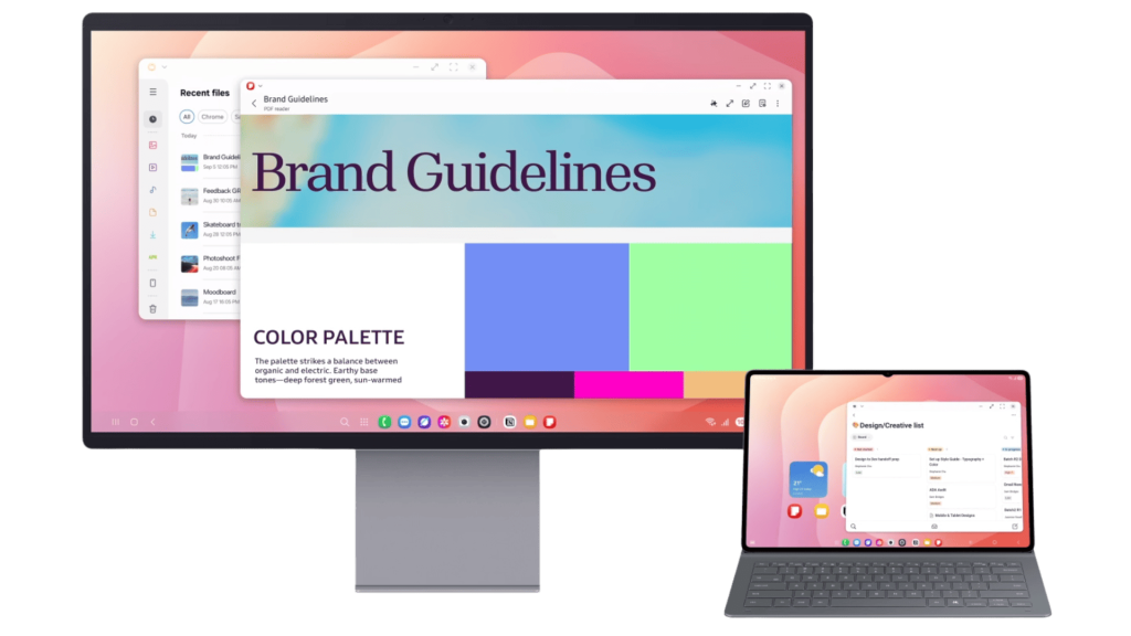 For even greater flexibility, the new Samsung DeX also introduces up to four (4) customizable workspaces, tailored for different needs. Each workspace offers a clean, focused environment that adapts to your daily agenda.