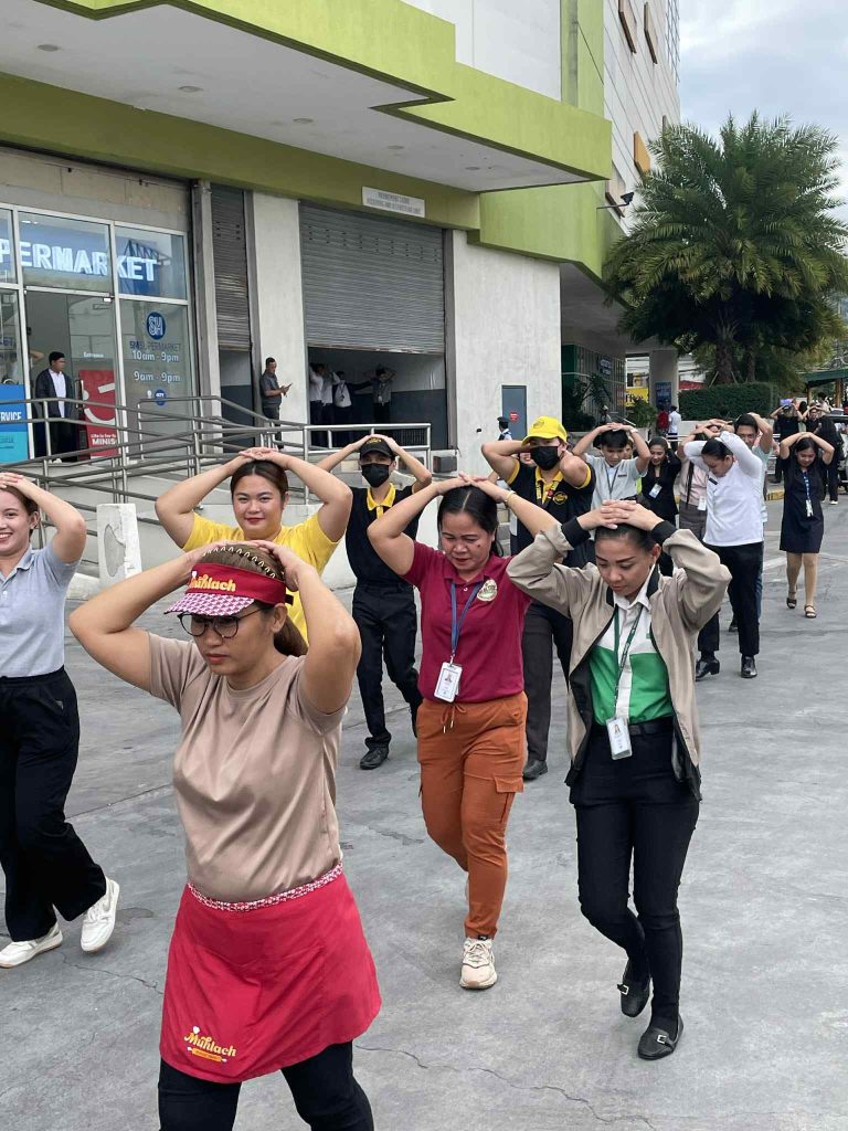Mall employees, tenants, and shoppers actively took part by practicing the ‘duck, cover, and hold’ procedure and safely evacuating to designated assembly areas.