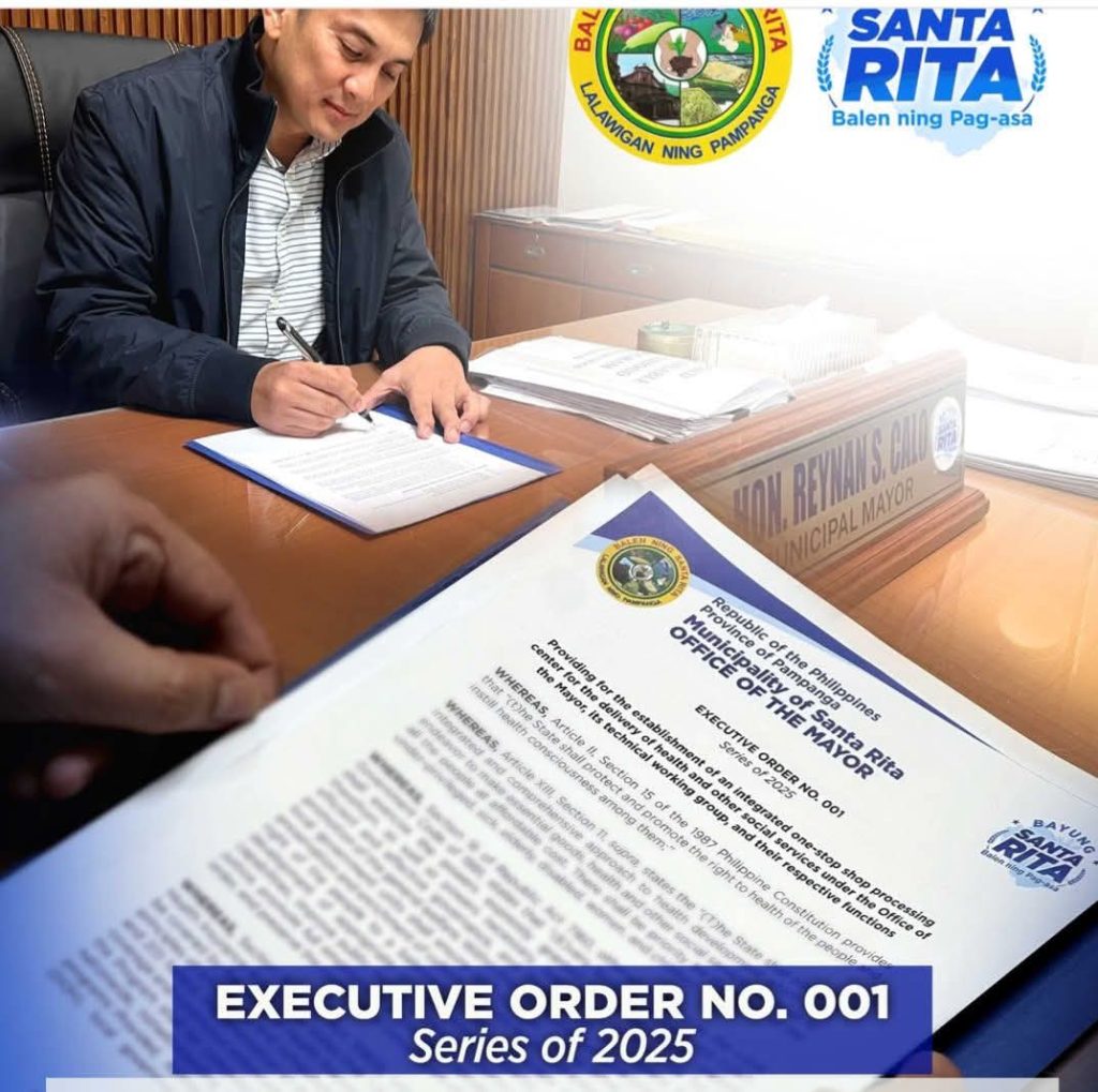 SANTA RITA, Pampanga – Mayor Reynan Calo signed his first executive order creating the CALOGURAN Center, a centralized one-stop-shop for medical, financial, and social services. The center streamlines public assistance from key municipal offices, reflecting Calo’s promise of accessible and compassionate governance. CALOGURAN stands for Centralized Access and Linkages Onsite for General Unprecedented Requirements for Action and Needs—delivering dignified, direct help to Ritenians in need.