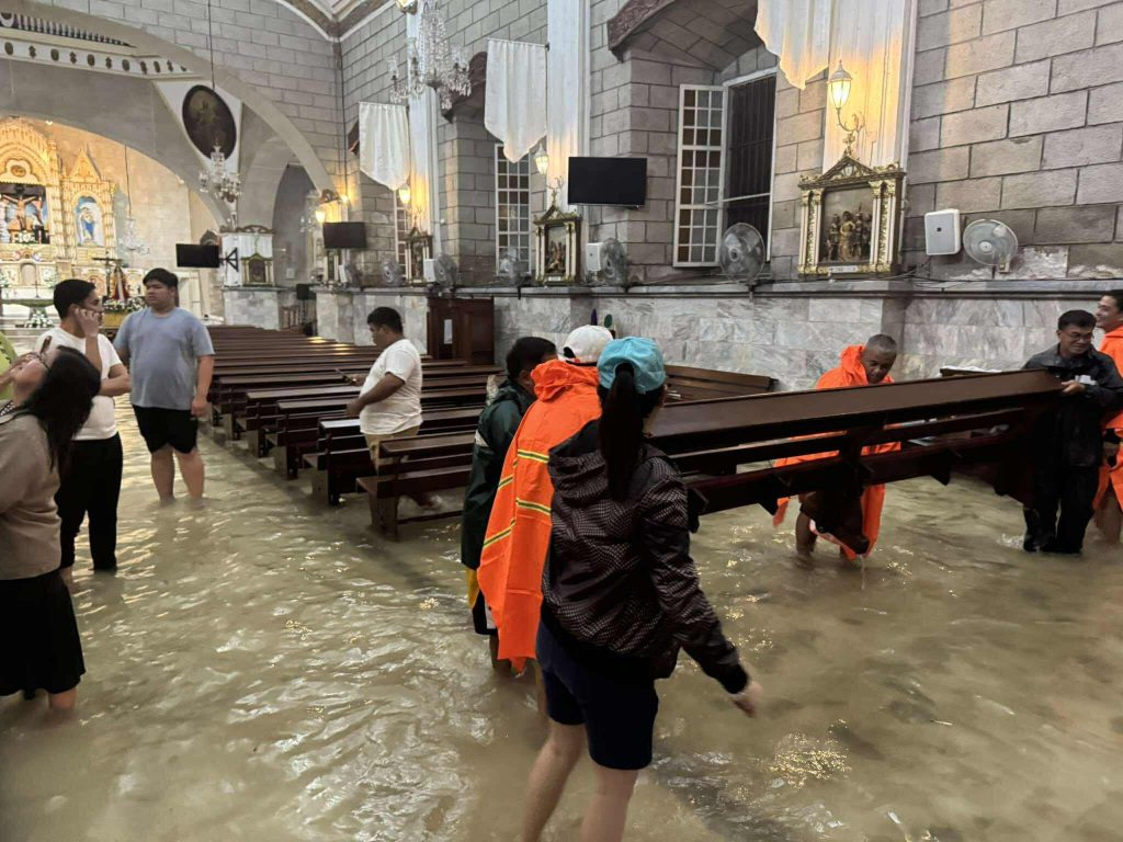 In addition to the repacking efforts, local officials extended immediate assistance to Sta. Rita de Cascia Parish Church, where rising floodwaters prompted concern. Councilors on the ground helped move items to safer areas to prevent damage to church property.