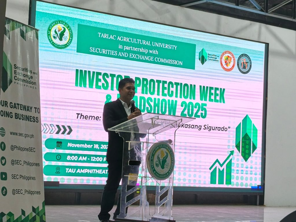 TARLAC CITY – The Securities and Exchange Commission – Tarlac Extension Office (SEC-TAREO) spearheaded the Investor Protection Week (IPW) Roadshow, where students and staff of Tarlac Agricultural University (TAU) received lectures on financial literacy, investment scams, and investor protection.