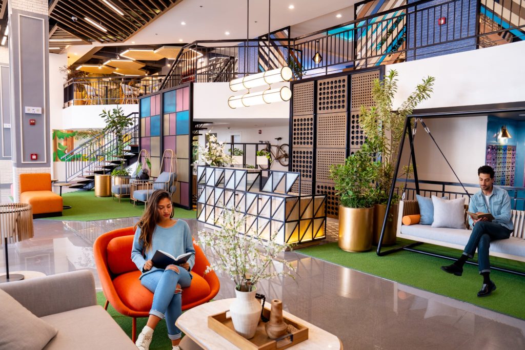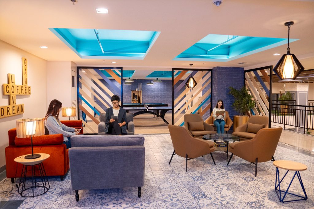 One feature that stands out the most is Bryant Parklane’s game-changing bi-level lobby, modeled after the creative energy of Google-style co-working spaces. This multifunctional hub includes indoor bike racks and shared amenities such as a daycare center with hammock area, Turf Lounge, Pingpong Café, and a mini-library—all designed to encourage interaction and foster a strong community spirit.